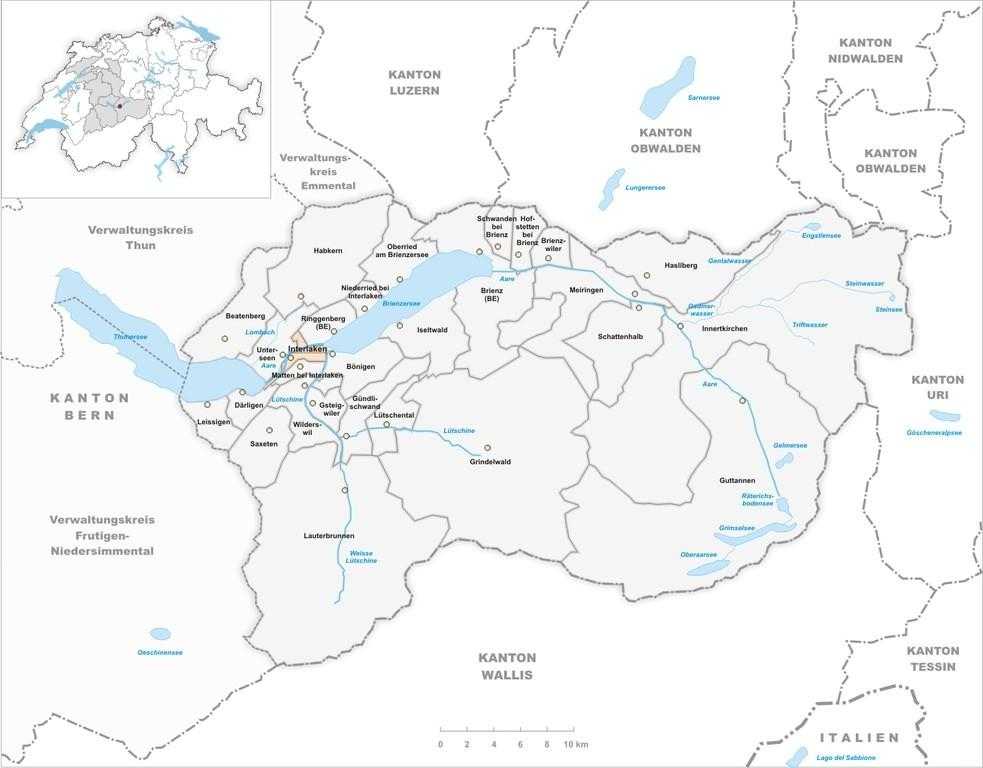 Интерлакен на карте Швейцарии. Фото: Tsсhubby, CC BY-SA 3.0