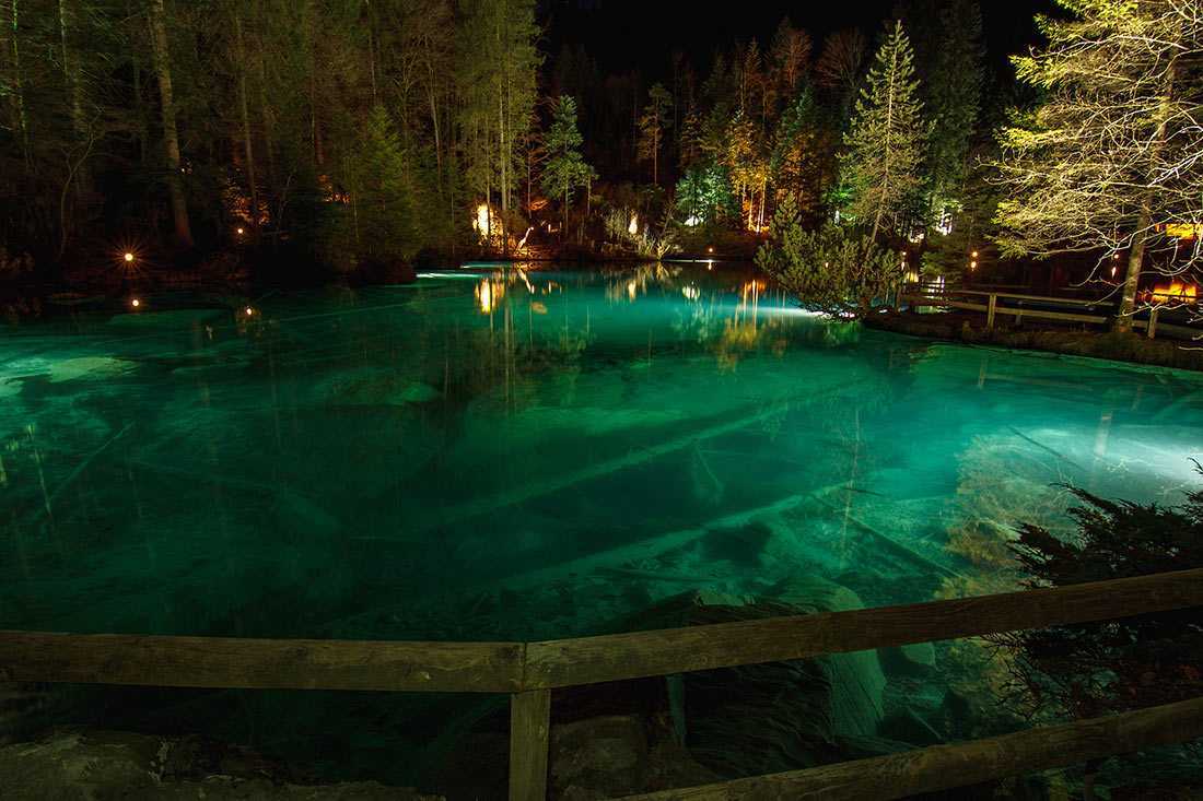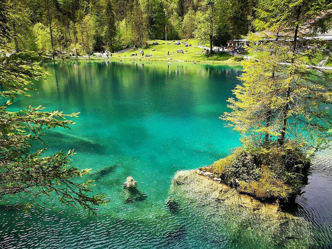 Расположенное в долине реки Кандер небольшое озеро Блау по-своему очаровывает. Название свое оно получило в честь синей воды. Легенда гласит, что озеро получило свой цвет от голубоглазых девушек, которые умерли от разбитого сердца. Живописное озеро расположено в пышном зеленом лесу посреди природного парка Блау. На протяжении веков озеро было популярным место, но все же здесь сохранилось ощущение покоя. Любимые занятия туристов – рыбалка, походы и пикники. А если вы просто хотите расслабиться — в отеле на берегу озера есть СПА-салон с полным спектром услуг.