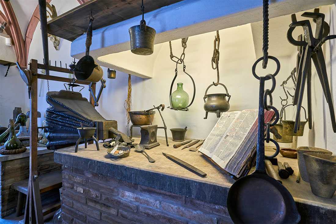 Количество артефактов здесь действительно впечатляет. Керамические сосуды от пола до потолка производят неизгладимое впечатление. Кроме того, вы увидите аптечки, лабораторные инструменты, целые аптечные интерьеры (включая кабинеты), странные приспособления для занятий алхимией и сохранившиеся остатки исторических лекарств.