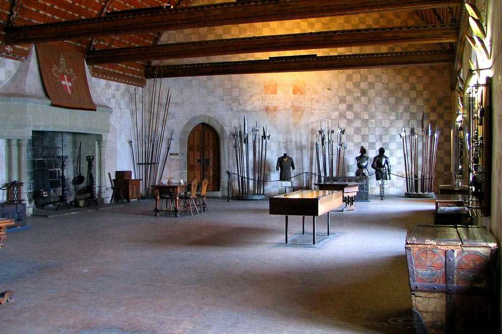 Самым красивым помещением замка, безусловно, является его часовня. На ее потолке и стенах до наших дней сохранилась удивительная роспись, которую сделали величайшие художники еще в 14-м веке. Часовня – единственное здание, которое не пострадало в момент захвата замка приверженцами идей и политических взглядов Франсуа Бонивара. Для того чтобы осмотреть весь замок туристу понадобится целый день: многочисленные столовые, покои герцогов с дорогим интерьером, четыре гигантских зала, с окон которых открывается поражающий воображение вид на Женевское озеро. Несомненно, интерес вызовет и графская спальня, в которой расположена «детская кровать». Нет-нет, не подумайте, что на ней спал ребенок, просто в те далекие времена, когда правили герцоги Савойские, никто не ложился спать лежа! Ко сну отходили в почти сидячем положении, ведь полностью лежать могли только трупы.