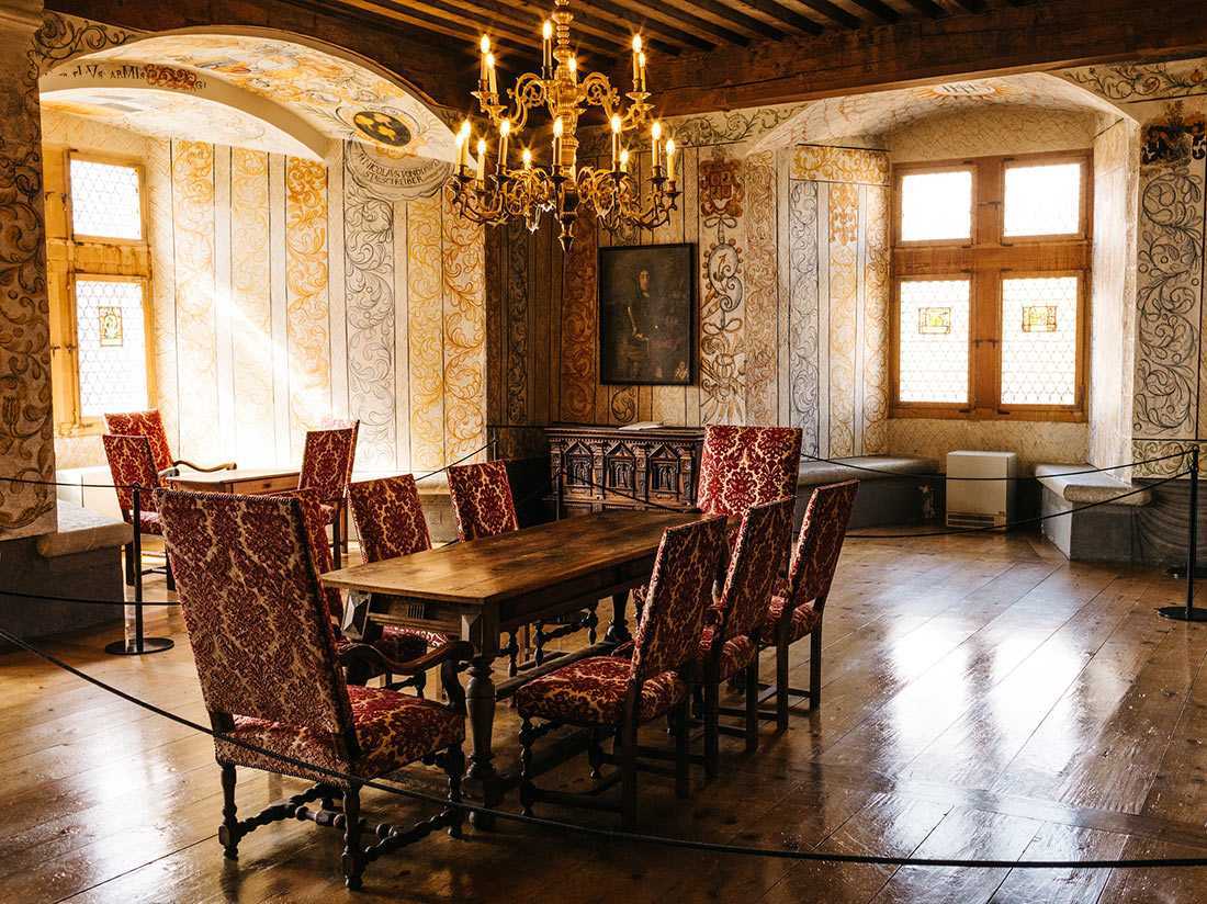 Грюйер невозможно назвать роскошным дворцом в прямом смысле этого слова, скорее, это яркий пример того, как выглядел замок в эпоху Средневековья. Естественно, по меркам того времени, внутренний интерьер можно было назвать богатым. Современному же туристу кажется, что внутреннее убранство отличается аскетизмом. Самым интересным местом в Грюйере можно назвать часовню.