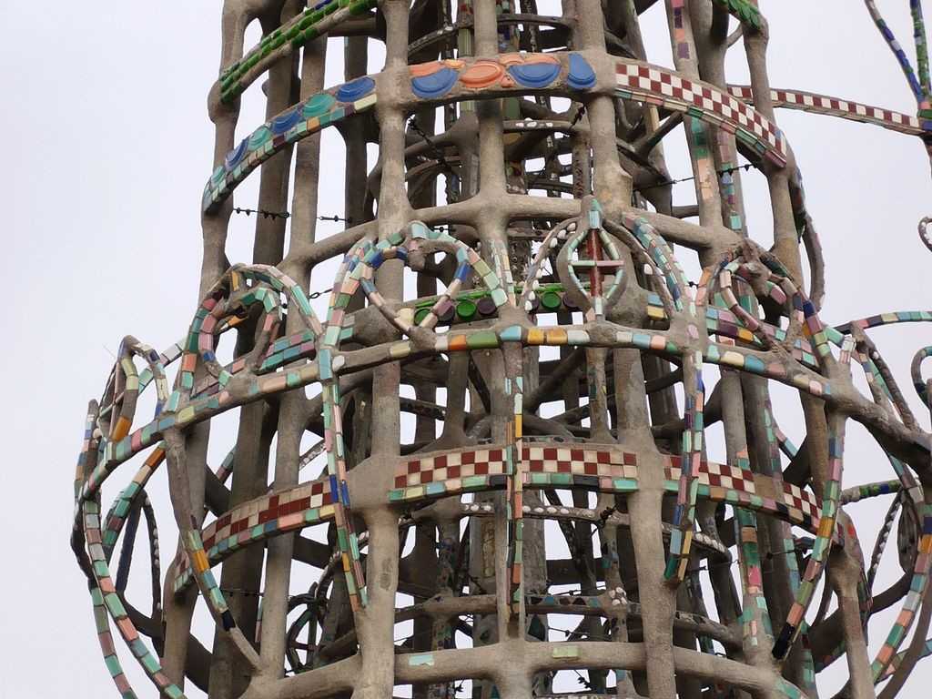 Башни Уоттс представляют собой полые конструкции из стали, обернутые проволочной сеткой. Основные сооружения украшены морскими ракушками, осколками фарфора, стекла, керамической плитки, бутылок и зеркал. Для украшения башен Родиа использовал все, что мог найти: от донышек от стеклянных бутылок из-под кока-колы до осколков битой посуды, которые ему приносили соседские дети.
