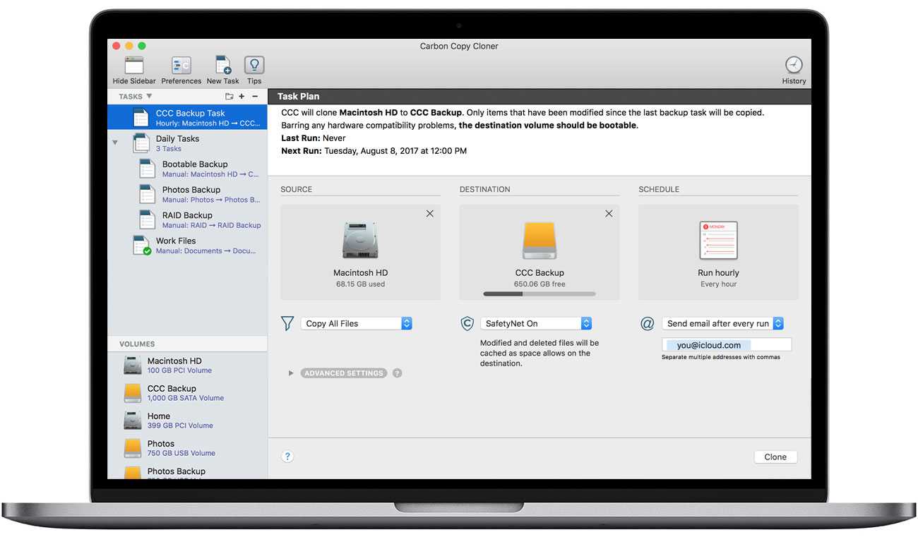 На создание копии может уйти долгое время. Это зависит от того, сколько у вас данных, какая у вас модель Mac и др. Пока процесс идёт, вы можете использовать свой компьютер как обычно.