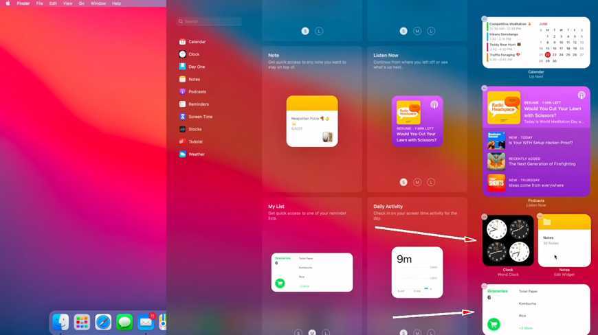 Чтобы добавить новый виджет, просто перетащите его из окна галереи в правую панель. В будущих обновлениях Big Sur ждем новые виджеты от сторонних разработчиков.