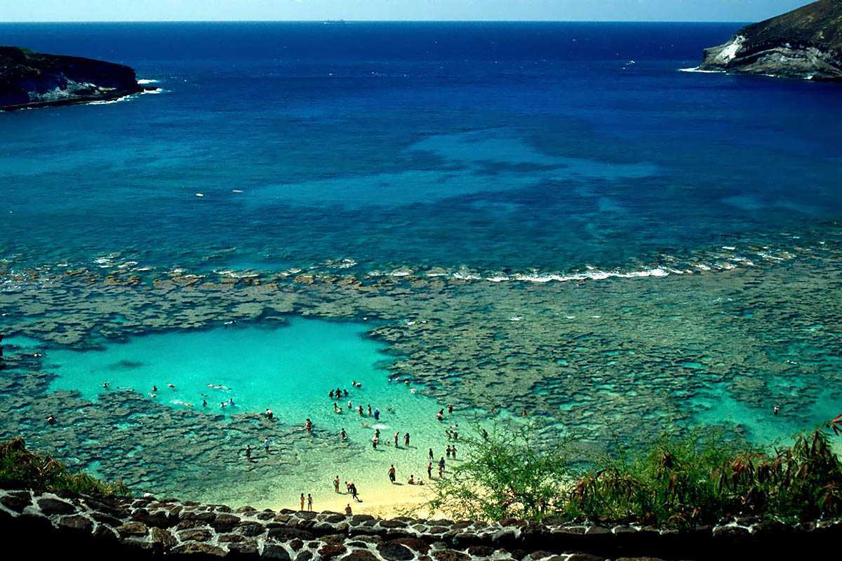Идеальное место для снорклинга – это бухта Ханаума Бей (Изогнутый залив) в США, на гавайском острове Оаху, откуда расстояние до Вайкики – около 16 км. Подводный мир этого места имеет довольно широкий спектр флоры и фауны (разброс до 450 видов рыб). Залив Ханаума, что означает «кривая бухта» — очень популярное место и знаменитая туристическая достопримечательность. По статистике, его ежегодно посещает не менее трех миллионов туристов. Он также является национальным парком и здесь действует запрет на плохое обращение с животными и какие-либо контакты с коралловым рифом. Залив Ханаума является также местом появления зеленых морских черепах.