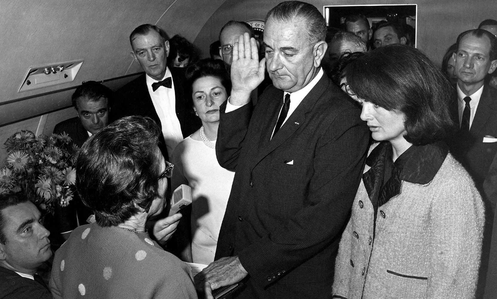 - Линдон Джонсон приносит присягу на борту самолета ВВС, 1963 год