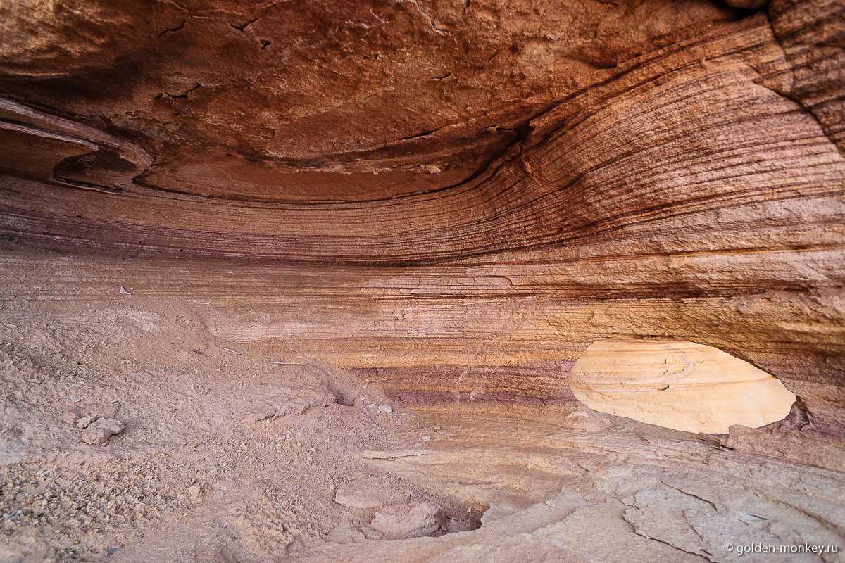 Еще одна достопримечательность – живописные каньоны. Несмотря на дикую жару, по одному из них мы с Андрюсиксом прогулялись и увидели по пути много необычного: склоны каньона, изъеденные ненасытным ветром, полости в скалах, в которых можно прятаться, «слоеные» склоны, по которым можно проследить разноцветные напластования, мини-арки, и так до бесконечности. Шучу, конечно, не до бесконечности, но всякого интересного много!