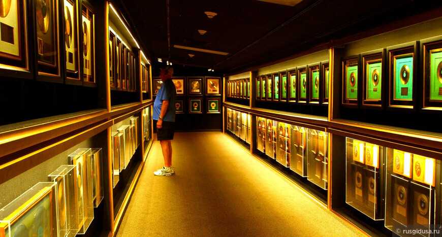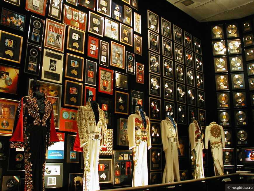 Главной достопримечательностью является верхний этаж дома, который буквально завален несметными наградами короля рок-н-ролла. На огромной стене коридора развешены золотые и платиновые диски Элвиса, изданные еще при его жизни, а в соседнем зале – множество уже посмертных наград за миллионные продажи альбомов, которые расходились тиражом до 50 млн. экземпляров!