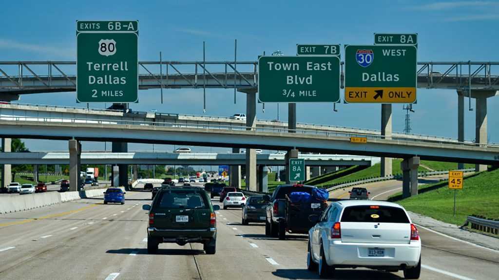 Съезд и выезд на интерстейты осуществляется через так называемые «экзиты» (exit) с полосой разгона. Изображение с сайта freepik.com.