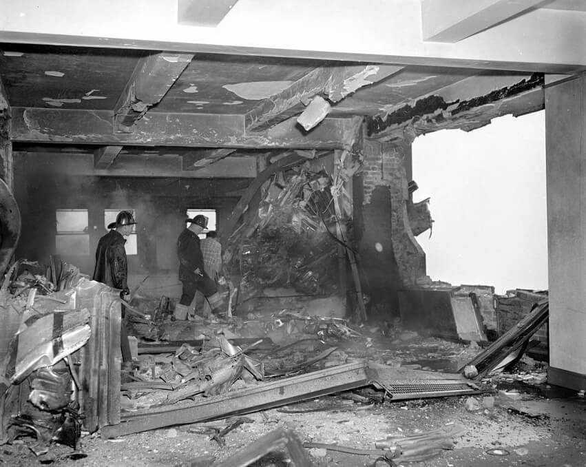 В истории небоскреба есть и траурные даты, в частности, в военные годы в здание влетел бомбардировщик. 1945 год, 28 июля стал разрушительным, так как самолет врезался между 79 и 80 этажами. Удар насквозь пробил здание, один из лифтов упал с огромной высоты, при этом находившаяся в нем Бетти Лу Оливер осталась жива и попала за это в число мировых рекордсменов. 14 человек погибли в результате этого происшествия, но работа офисов от этого не остановилась.