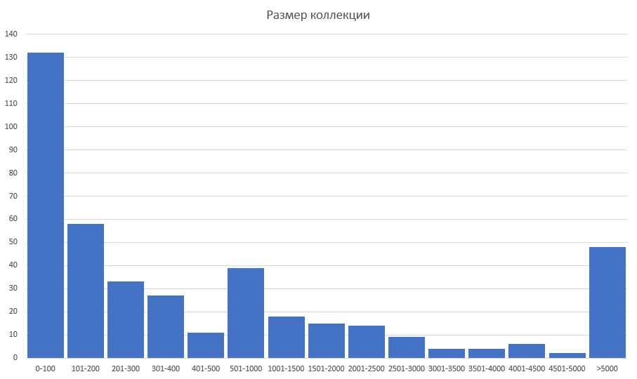 Больше всего коллекции, в которых до 100 объектов