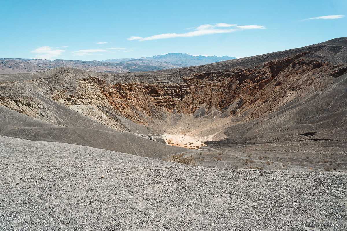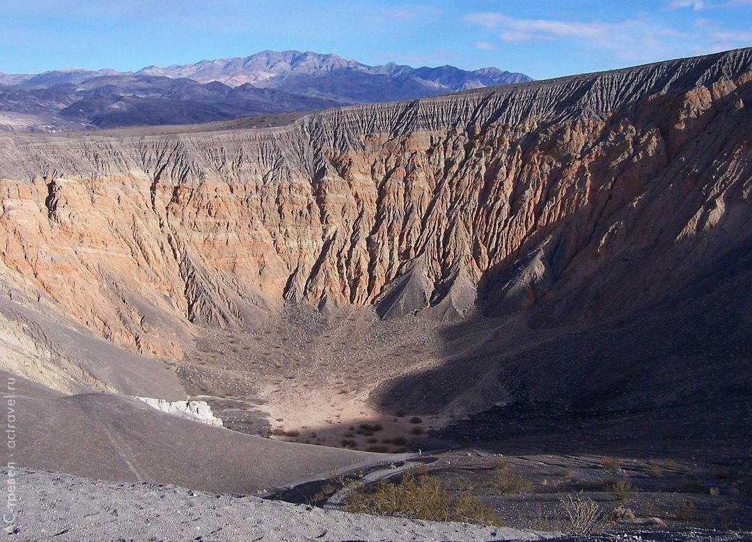 Примечательное место — кратер Юбехебе (Ubehebe Crater) километрового диаметра и глубиной метров двести.