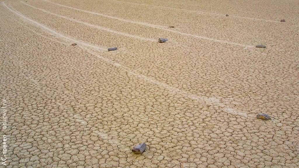 Ну и, конечно же, говоря о Долине Смерти, нельзя не упомянуть об одной из главных её достопримечательностей – «ползающих камнях». Именно благодаря этому уникальному явлению Долина стала знаменита на весь мир. Огромные валуны, самостоятельно передвигающиеся по дну высохшего озера Рейстрейк-Плайя и оставляющие за собой весьма заметные следы, вот уже множество лет являются неразрешимой загадкой Долины Смерти. Быть может, именно вам посчастливится её разгадать?