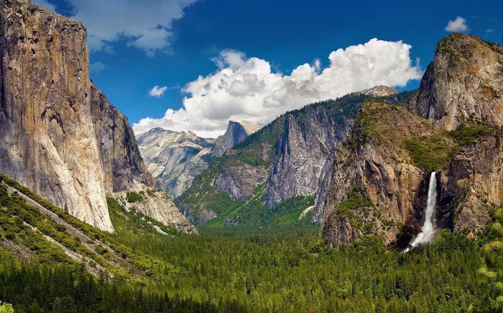 В долине Йосемити есть много скалистой местности, а также сглаженные куполообразные горы из породы серого гранита. Огромное количество речек в породе смогли пробить несколько глубоких каньонов, в результате чего образовались высокие стены, длина которых может достигать до несколько сот метров, кстати, такие стены в парке совершенно не являются редкостью. Та же причина заставляет задуматься о происхождении здешних водопадов со значительной высотой. В их число можно включить знаменитый водопад Йосемити, который всем известен на территории Северной Америки. Да что Америки, во всем мире! По данным ученых, ландшафт образовали крупные ледники, которые смогли растаять оставив за собой такие шикарные виды. В огромных каньонах растут леса, они же растут и на территории горного плато. На горных вершинах красуются альпийские луга.