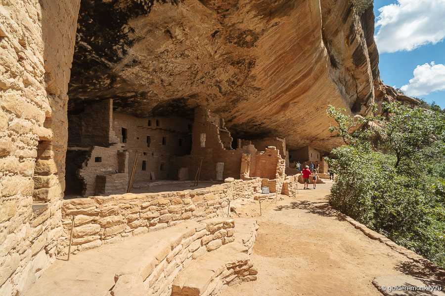 Самое огромное и поразительное строение «Скальный Дворец» насчитывает 150 комнат и 75 двориков. «Дом с балконом» так же вмещал в себя множество жильцов, но при этом еще и очень труднодоступен. Чтобы добраться до него, нужно преодолеть десятиметровую лестницу, узкий тоннель, и каменные ступени. Сейчас не далеко не все здешние постройки доступны для осмотра туристами из-за того, что к ним добираться очень тяжело, кое-где даже опасно. Поэтому экскурсии по историческим строениям проводят специальные рейнджеры.