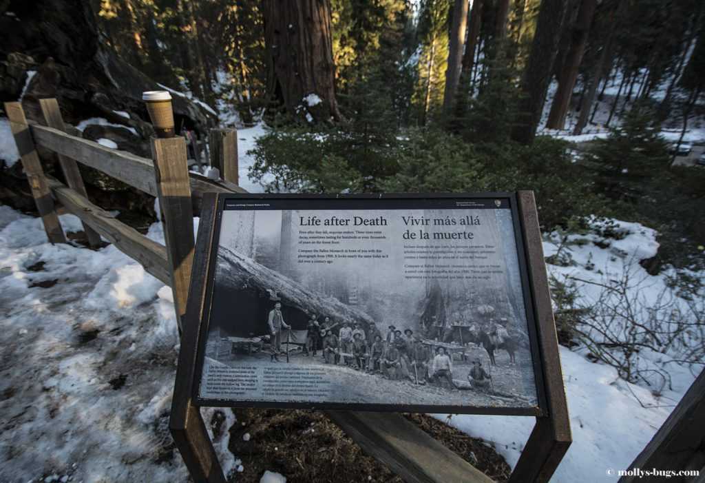 Кроме этого, в роще можно увидеть поваленную секвойю, которую называют «Павший монарх» (Fallen Monarch). Никто точно не знает, когда именно упал этот гигант, но с 1868 по 1876 г.г. этот ствол служил для самых разных целей: в нем располагалось жилище, отель, салун и даже конюшня для 32 лошадей. Сейчас ствол пустой, и вы можете просто пройтись внутри него и прочувствовать размеры этого огромного дерева. Также здесь можно увидеть много спиленных деревьев, а также других поваленных стволов, которые лежат еще с прошлого века, и служат живым напоминанием о безответственной деятельности человека по отношению к природе.