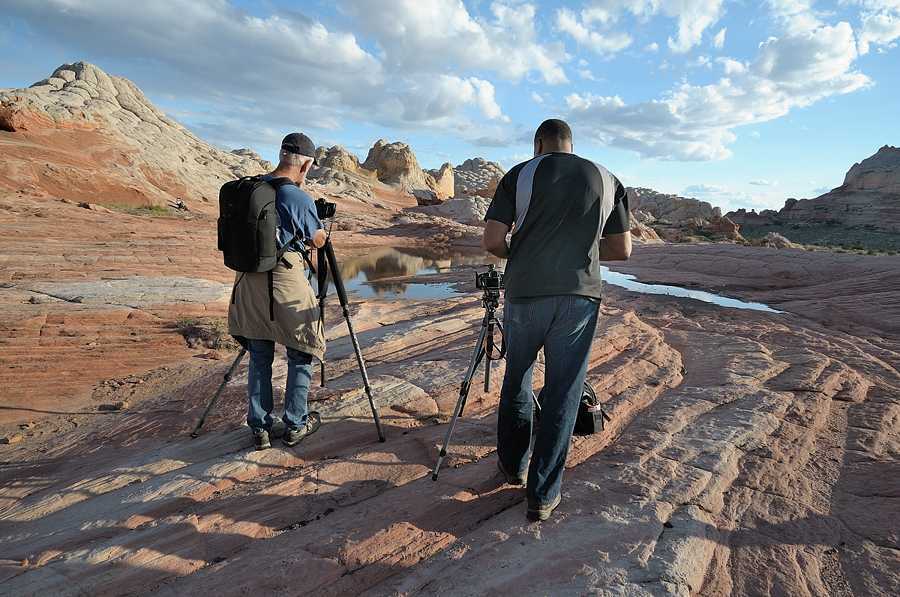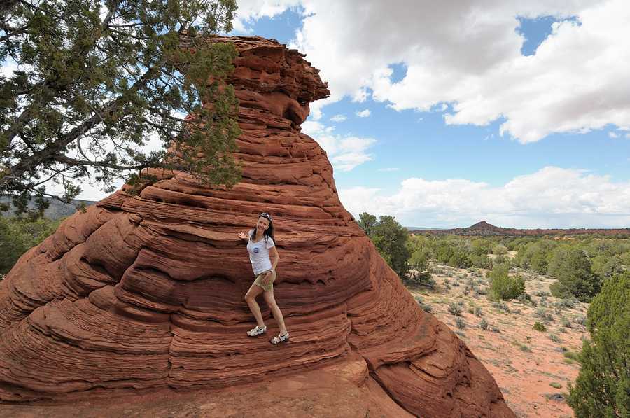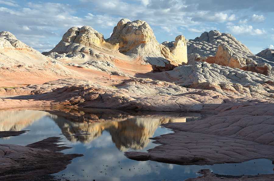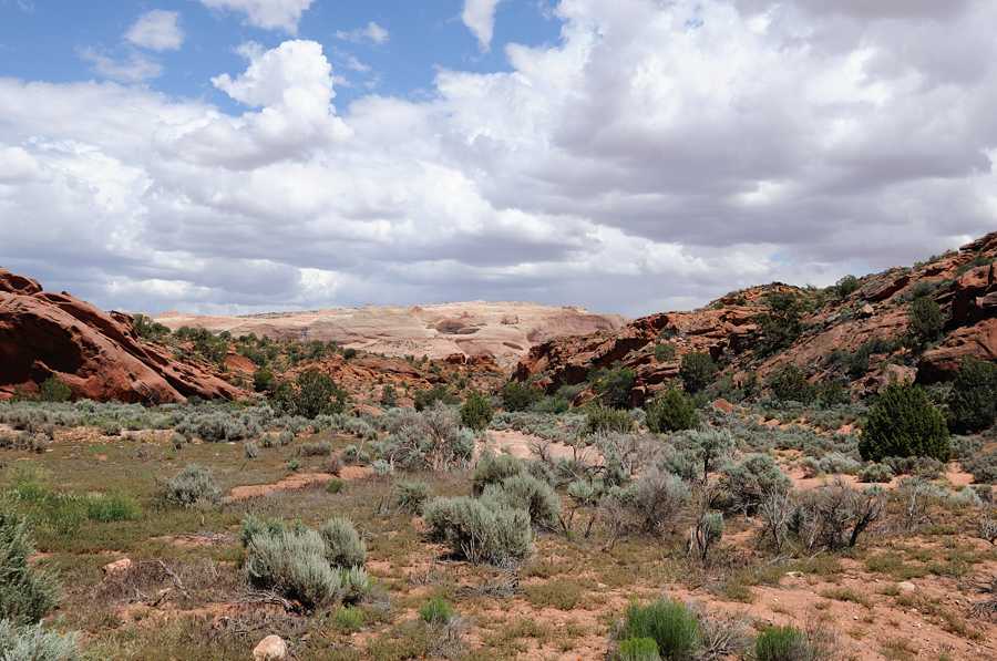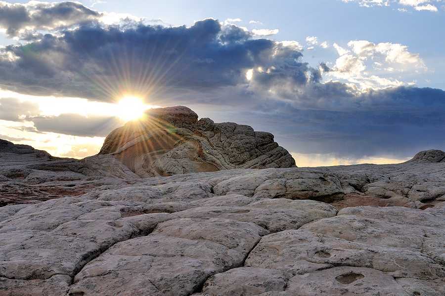Вайт Покет, прибываем уже после полудня, погода не фонтан, но надеемся на чудо перед закатом. Не без оснований, в этих краях это нормально. Всю дорогу не покидает ощущение что едем зря, одна отрада — хоть покатаемся на джипе по пустыне и получим свою дозу адреналина. Пейзаж красивый, но такого добра хватает и вдоль асфальтовых дорог. Добираемся до места примерно через пять часов после старта, 3 часа дорога и пару часов занимают остановки. Парковка, три автомобиля. Всего три автомобиля! Вокруг какие-то скалы, красивые но довольно обычные. Находим чувака в клетчатой рубашке и ковбойской шляпе. Где тут White Pocket? Парень на вид лет шестидесяти в теме, потому что сразу показывает куда нужно идти — примерно 500 метров от парковки