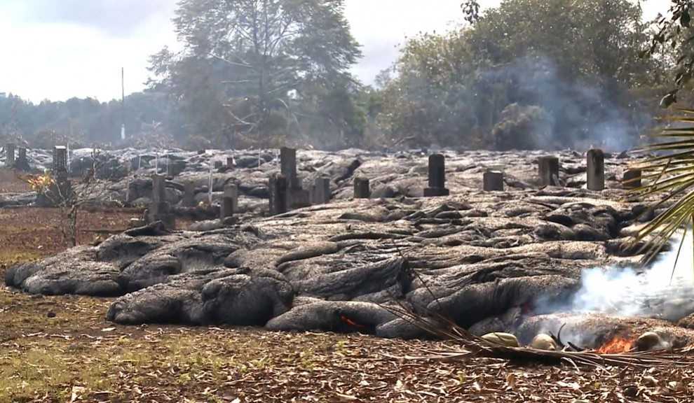«Поток 27 июня» погребает под собой кладбище в деревне Пахоа, 26 октября 2014 года.