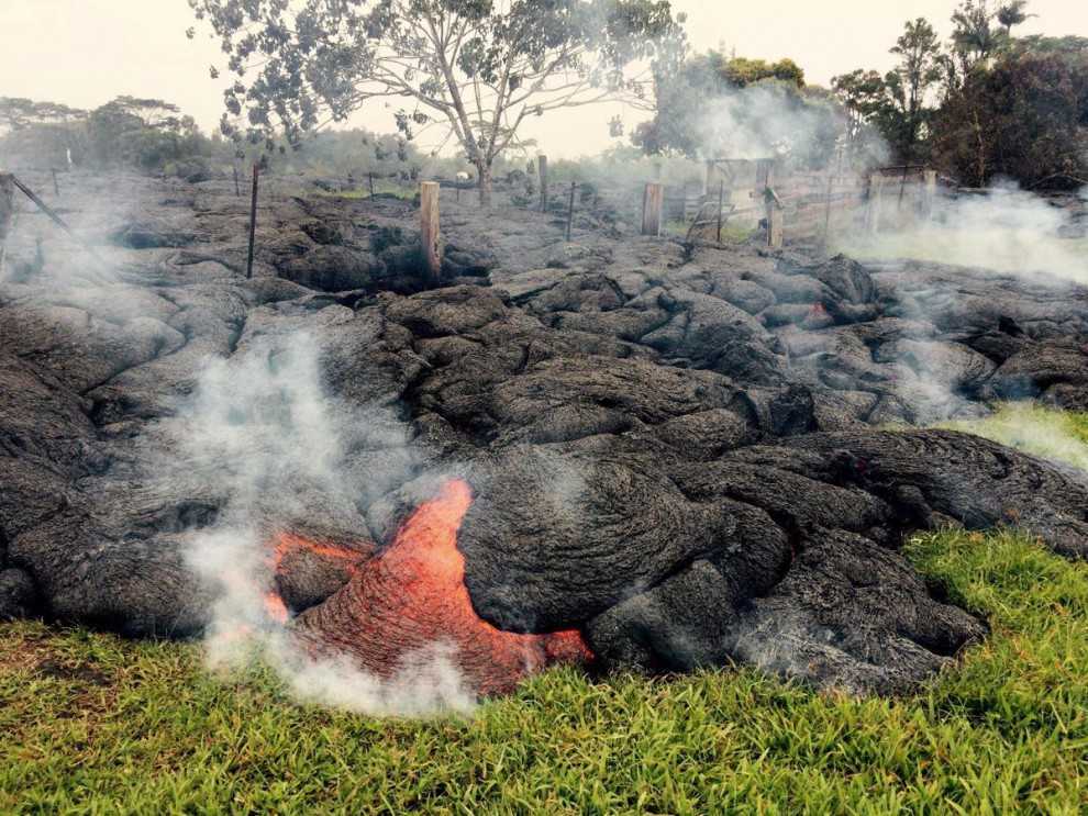 Поток лавы с близкого расстояния. Жители самого южного из Гавайских островов в этом году уже пережили тропический циклон, а теперь столкнулись с угрозой медленно подбирающейся лавы.