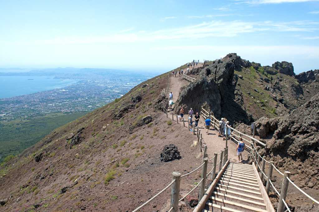 Многие люди едут сюда специально, чтобы подняться на вершину горы высотой 1281 метр. Вулкан знаменит тем, что в 79 году нашей эры уничтожил Помпеи, а также другие города Древнего Рима. Последнее крупное извержение случилось в 1944 году. Тогда был разрушен фуникулер, и на вершину Везувия остался только один путь — пеший. Правда, идти придётся не так уж много: примерно на тысячу метров можно подняться на автомобиле, затем оставить транспорт на парковке и немного пройти до верхней точки вулкана. С него открывается панорама на окрестности, где без малого две тысячи лет назад были города, оказавшиеся под лавой всего за один день.