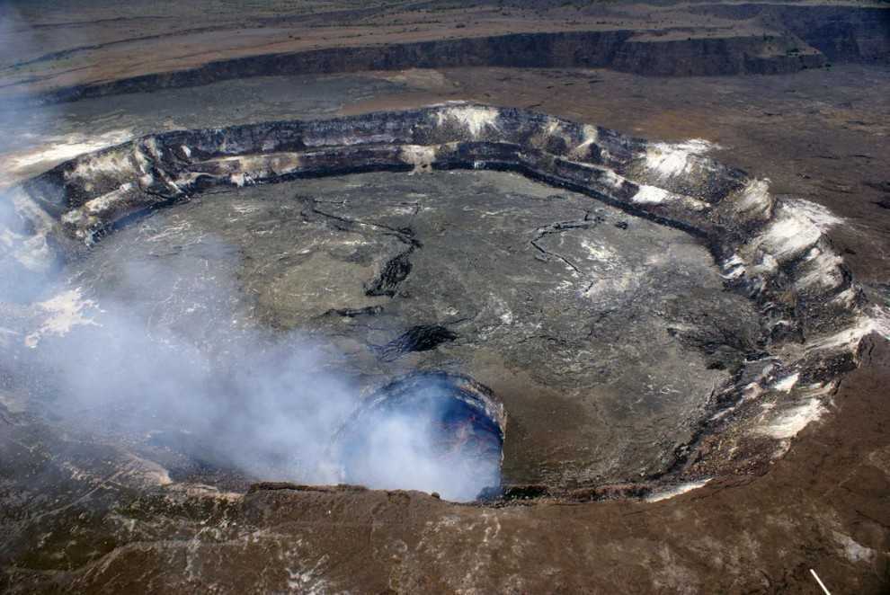 Активное лавовое озеро в кратере на вершине вулкана Килауэа в Пахоа, Гавайи, 17 сентября 2014 года.