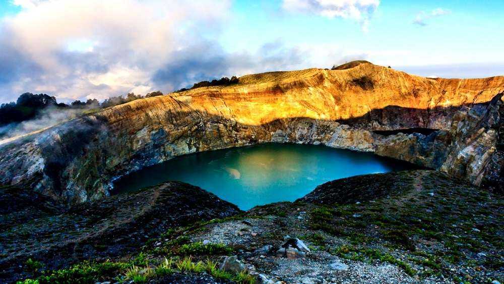 Остров Флорес знаменит своей возвышенностью высотой 1639 метров. По итогу извержения в 1968 году, на его вершине возникли 3 кратера. С годами там образовались озера и они регулярно меняют цвет своих вод. Каждое из трех озер имеет свое собственное название. Аборигены верят, что в них попадают души умерших людей, а цвет воды олицетворяет изменение настроения душ. С научное точки зрения, там содержатся различные химические вещества и постоянно меняют свой состав.