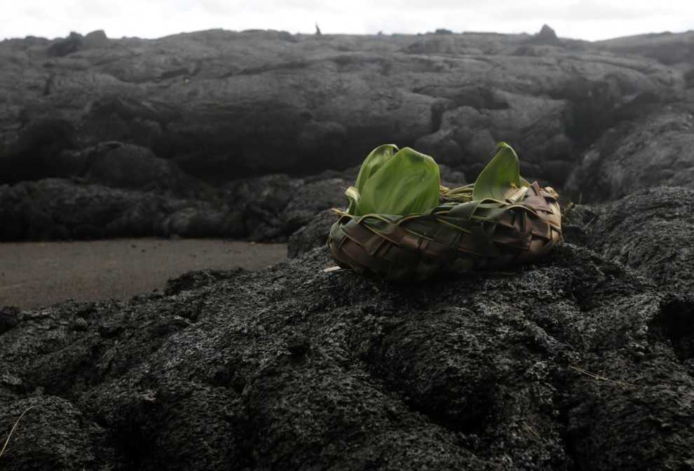 Пожертвование, оставленное коренными жителями на застывшем потоке лавы, 30 октября 2014 года.