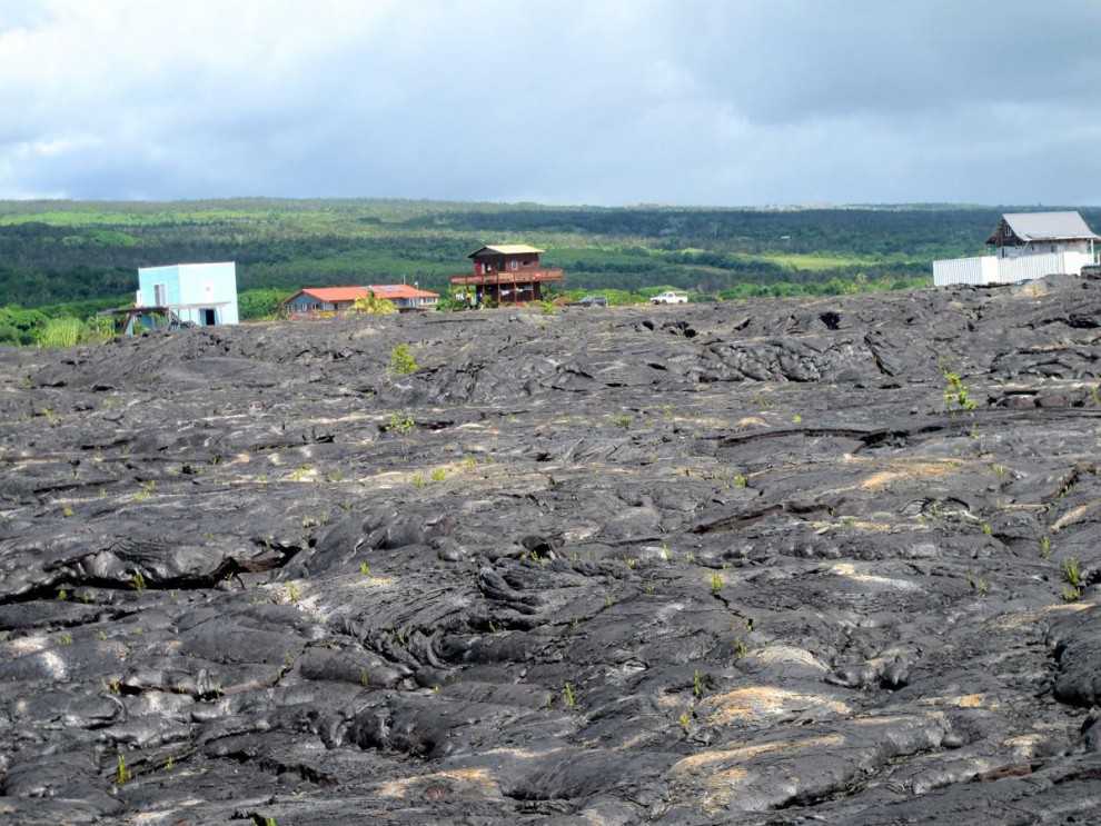 Дома в окружении свежих лавовых масс, 30 октября 2014 года.