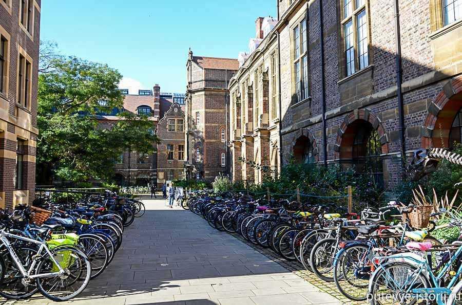 За кирпичной стеной оказался обширный кампус и множество разнообразных образовательных учреждений, находящихся в ведении Кембриджского университета. Так, из одного подъезда высыпал целый класс младших школьников, к другому подтягивались студенты. Дворы были уставлены велосипедами. (Вообще Кембридж – город велосипедистов, улицы ими просто заполонены).
