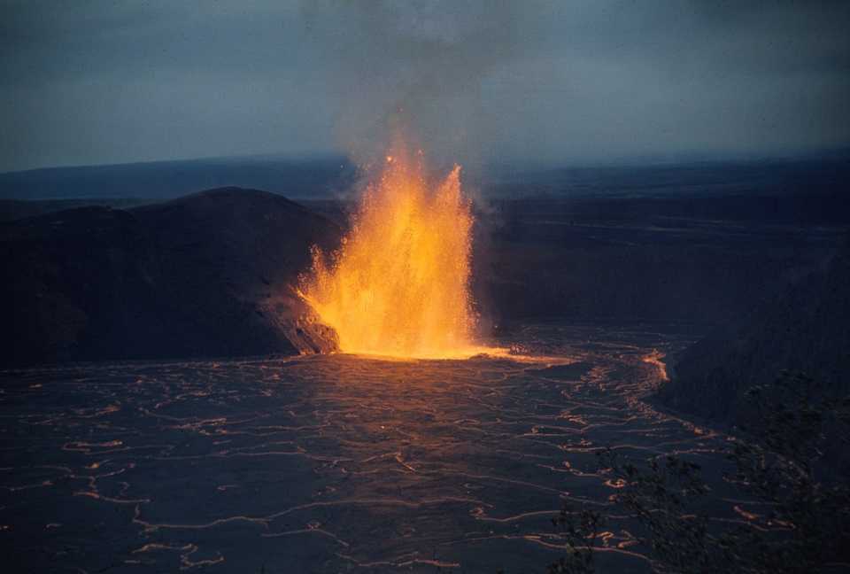 Извержение в старом кратере Килауэа Ики, вулкан Килауэа, Гавайи, 1959 год.