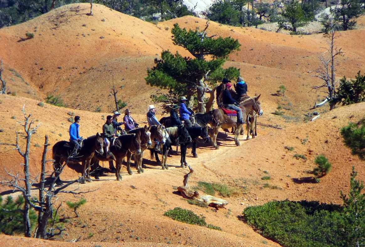 Для тех, кто хочет спуститься в каньон и насладиться красотами Брайса без пешеходной ходьбы, есть верховые экскурсии на лошадях и мулах. Мы несколько раз встречали и видели вдалеке этих всадников.
