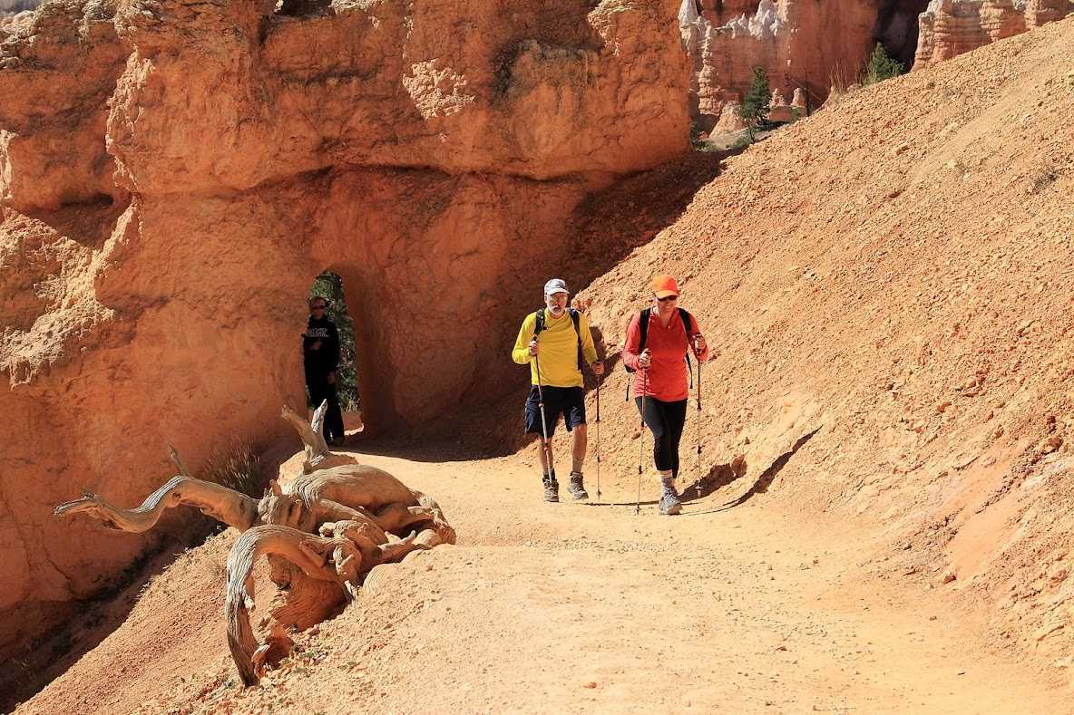 Очень много людей ходят с треккинговыми походными палками. Куда ни глянь, народ фигачит с ними по тропам. Более десяти лет назад, когда мы впервые попали в национальный парк Bryce Canyon, треккиновые палки встречались, но были не столь популярны.