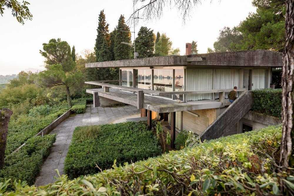На заметку! Все вертикальные элементы дома сделаны из местного камня, при этом он слегка выступает из кладки для придания ей скульптурной выразительности. Все горизонтальные элементы – из монолитного бетона. Полы тоже, как стены, выложены из камня, а столярные изделия выполнены из тщательно обработанного свилеватого ореха.