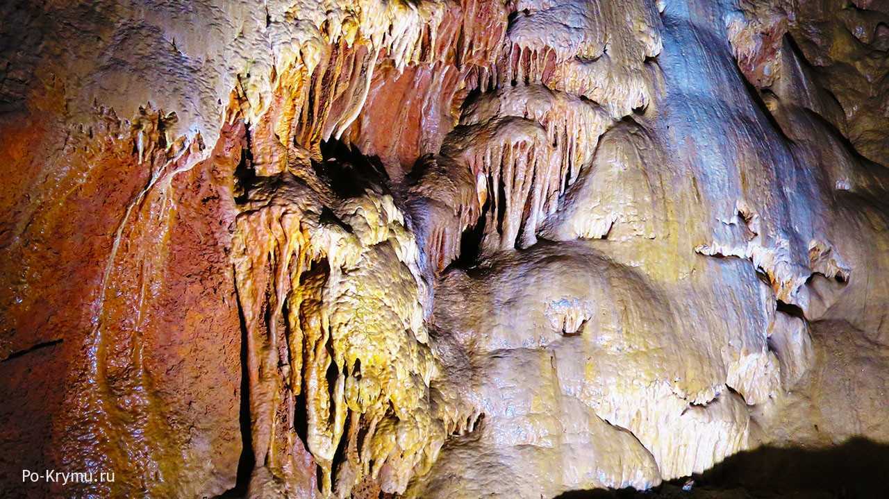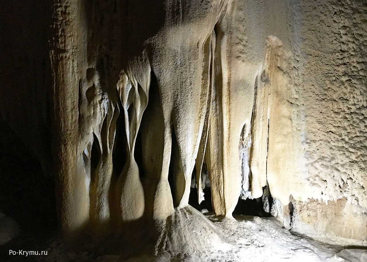 Затем для туристов открыли еще два зала. Маленький проходной зал «Сокровищница» назван так по сверкающим на свету геликтитам, созданным водой, воздухом и кальциевыми солями. Они напоминают плющ, только минеральный.