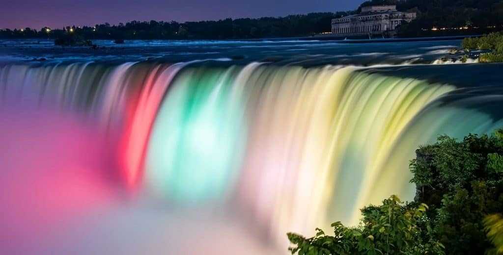 Вечер у Ниагарского водопада радует гостей незабываемым световым шоу. Эмоции и впечатления от шоу надолго запомнятся туристам.