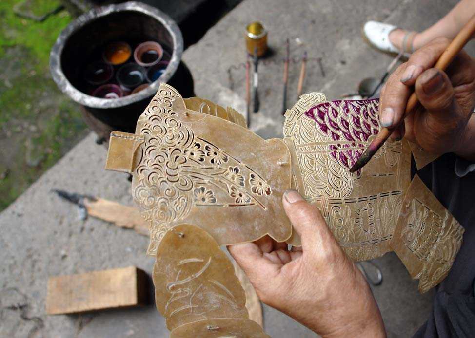Способ изготовления куклы заключается в следующем: кожу осла или овцы очищают и обрабатывают химически, чтобы она стала достаточно тонкой, полупрозрачной. Покрывают маслом дун и сушат. Потом вырезают различных части, поразительной точности.