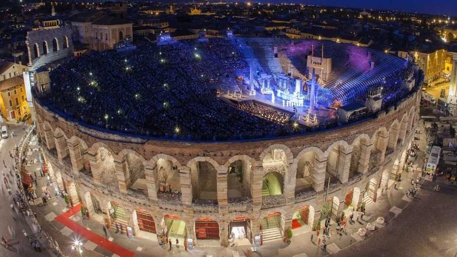 С 1913 года ежегодно летом здесь проходит оперный фестиваль. Ставят в основном зрелищные постановки, такие как “Аида”, открывшая первый из этих фестивалей, “Турандот”, “Кармен”. “Арена ди Верона” способна вместить до 16 000 зрителей одновременно, что не под силу ни одному залу классических театров.