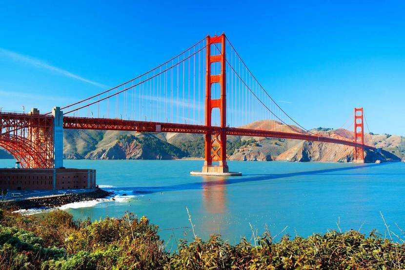 Главная достопримечательностью Сан-Франциско построен через пролив с одноименным названием и соединяет городской залив с Тихим океаном. Конструкция представляет собой висячий мост с подвешенной проезжей частью, а его длина составляет 1970 м. Работы по возведению моста длились с 1933 по 1937 годы, во времена Великой депрессии и в период становления города от последствий землетрясения 1906 г. Разработчиком проекта был Джозеф Строусс – лучший инженер того времяни по строительству мостов. В конце мая 1937 г. состоялось торжественное открытие самого большого висячего моста в мире на тот момент, данный статус мост Золотые ворота сохранял до 1964 г., пока его не обошел нью-йоркский мост Верразано. Уникальный мост признан символом США и является гордостью американского народа.