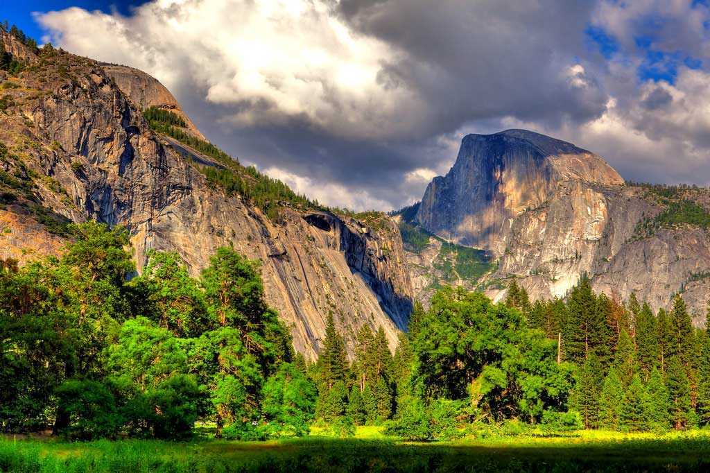 Вторая величественная скала Хаф Доум находится на востоке долины. Она напоминает огромный гранитный купол, высота которого составляет 144 м. В свое время она была увековечена на 25-центовых монетах в США. Первое ее покорение датируется 1875 годом, а сегодня по ее поверхности проложено несколько маршрутов.