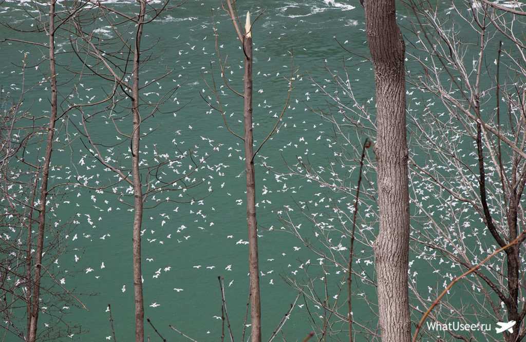 Пройдёмся к водопаду Подкова (Horseshoe). Здесь колонии птиц облюбовали берега реки Ниагары: