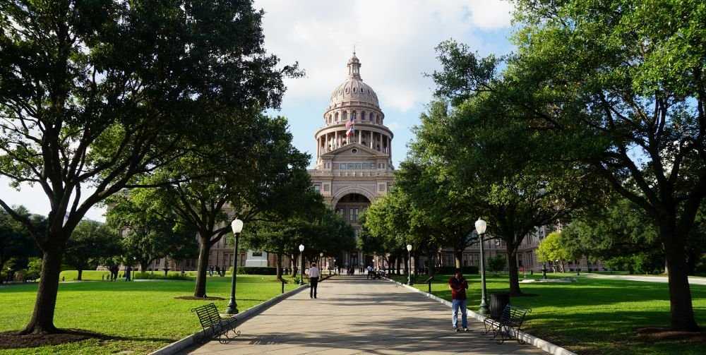 Техасский Капитолий является самым высоким во всей стране. Построен он был в 1888 году в итальянском архитектурном стиле эпохи возрождения ренессанса, относящемуся к 15 веку. Для здания характерны классические пропорции, круглые арки и симметричность композиции. Внешне он отделан гранитом красноватого оттенка. Высота здания составляет 94 метра, что превышает столичный Капитолий на 4,5 метра.
