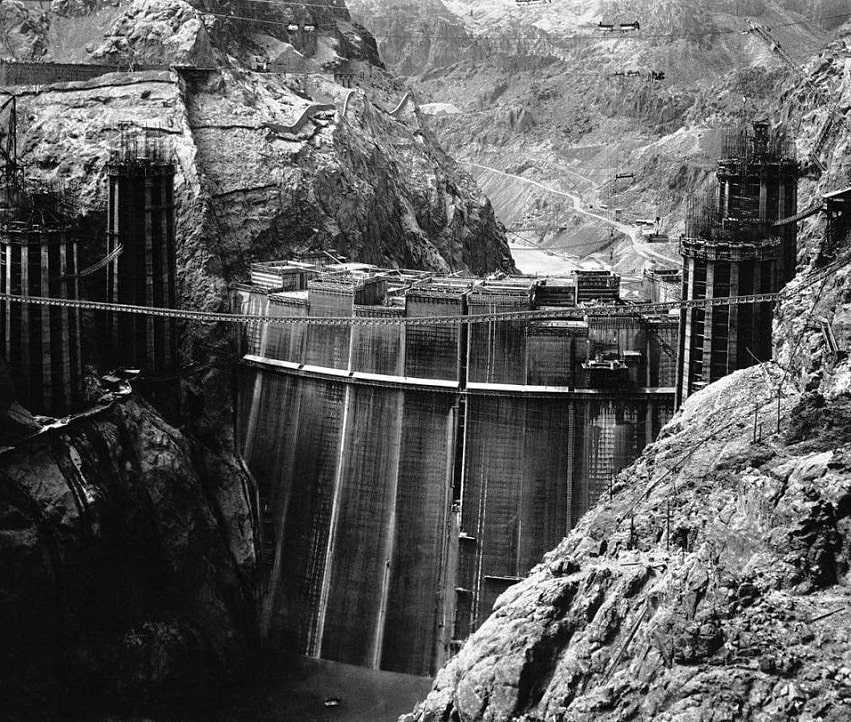 Завершилось строительство плотины Гувера в 1936 году. Она представляет собой соединенные между собой блоки, выполненные в форме трапеции, которые постепенно заполняли бетоном. Работы не прекращались круглыми сутками, для этого было установлено специальное освещение. Для того, чтобы бетон застывал быстрее, формы для заливки снабжали системой охлаждения, изготовленной из металлических труб.