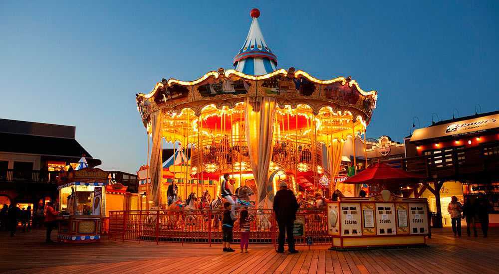 В центре пирса, есть небольшая зона с исторической каруселью. Красивая, двухэтажная карусель сделана в Италии и украшена изображениями Сан-Франциско. Дети покатаются на красиво разрисованных, довольно странных существах, таких как морские львы, сказочные лошадки и морские драконы.