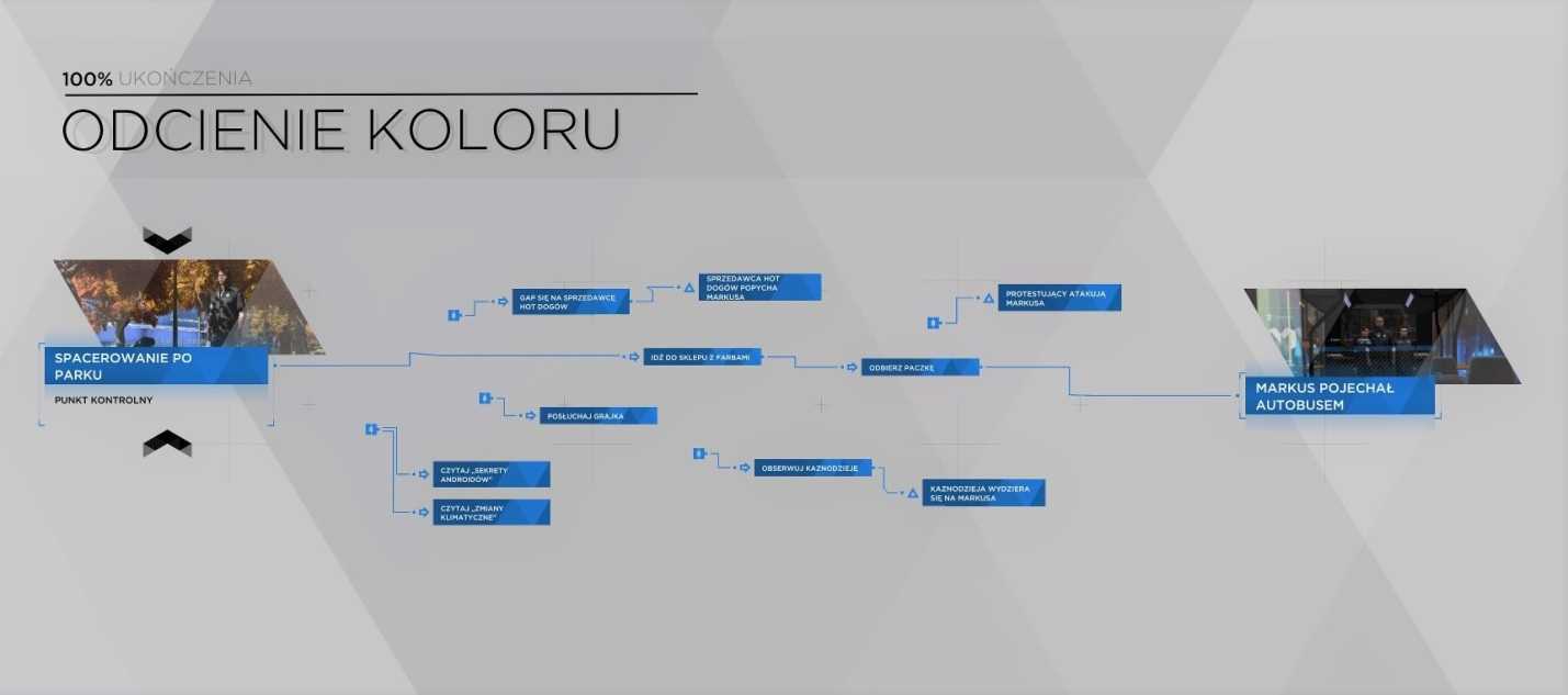 - Андроиды обрели свободу, но уничтоили Детройт — если Маркус поднес детонатор к бомбе в главе «Перекресток», он может использовать эту опцию и взорвать весь город. Детройт будет разрушен, люди умрут, а андроиды захватят город.