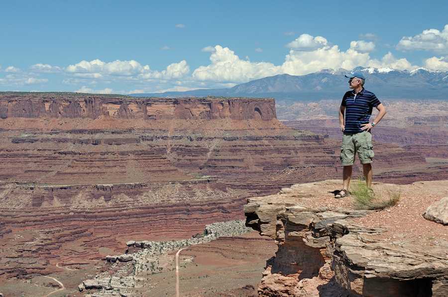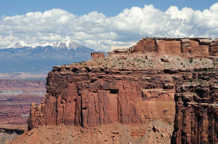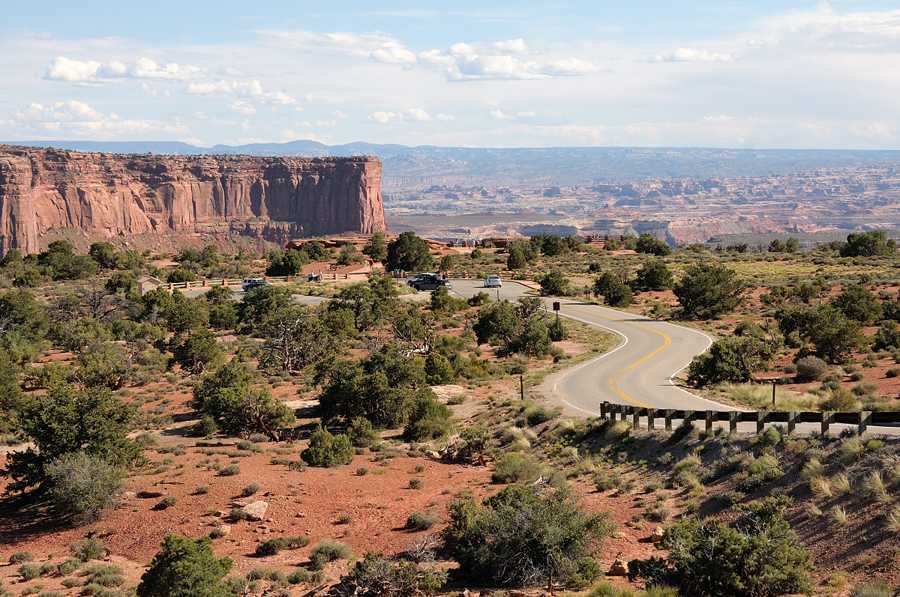 Самое популярное место в парке – Island in the sky – своеобразный полуостров образованный реками Колорадо и Грин Ривер, который заканчивается сумасшедшей красоты видом на морщинистое плато Колорадо изрезанное вдоль и поперек трещинами и пропастями. Попасть на него просто – нужно ехать по главной дороге от въезда в парк.