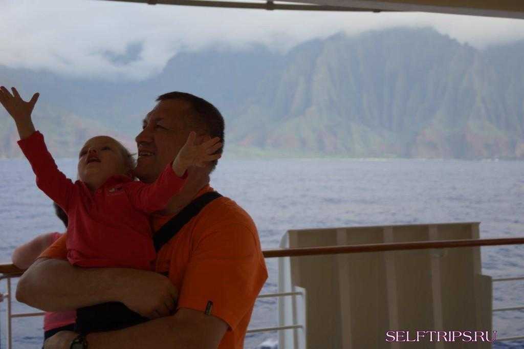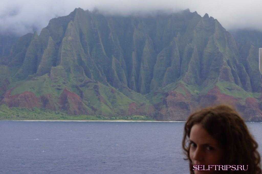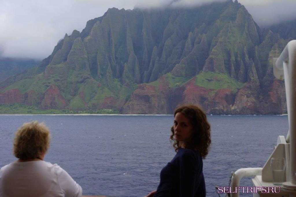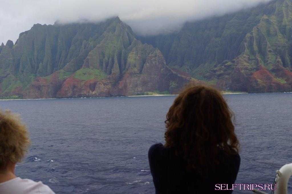 Затем корабль поплыл к пляжу На-Пали. Вот где виды!!! Мы, как и все остальные стояли у палубы и слушали громкоговоритель с экскурсионной программой и медленно и близко проплывали Na Pali coast. Надо смотреть фотографии…