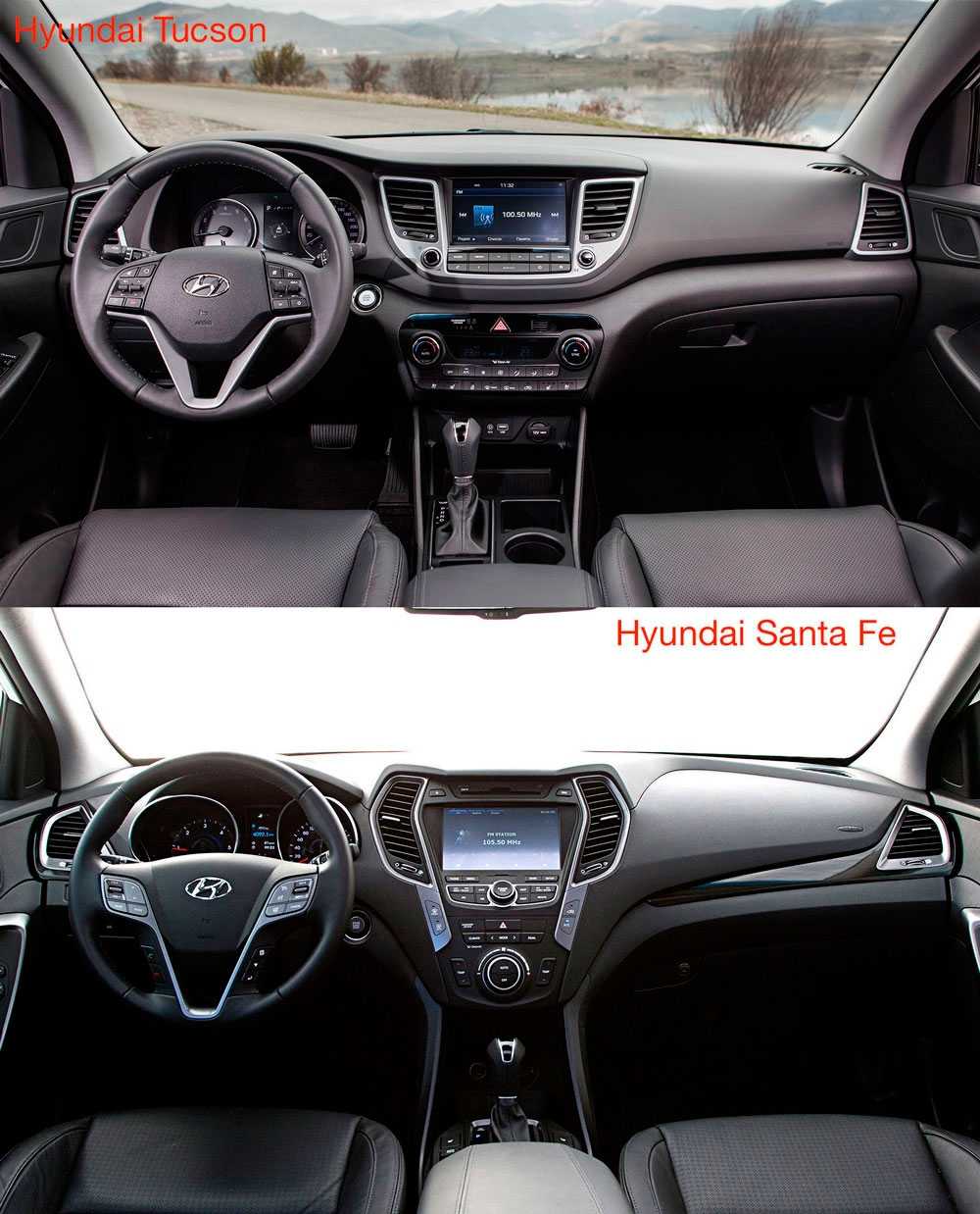 Очень сложно сравнивать салоны автомобилей Tucson и Santa Fe, которые являются представителями одной компании. Особенно это касается корейского концерна Хендай, разработчики которого, в оформлении интерьера моделей, используют одинаковые стилистические концепции. Чтобы далеко не ходить, достаточно заглянуть внутрь последних модификаций автомобилей.