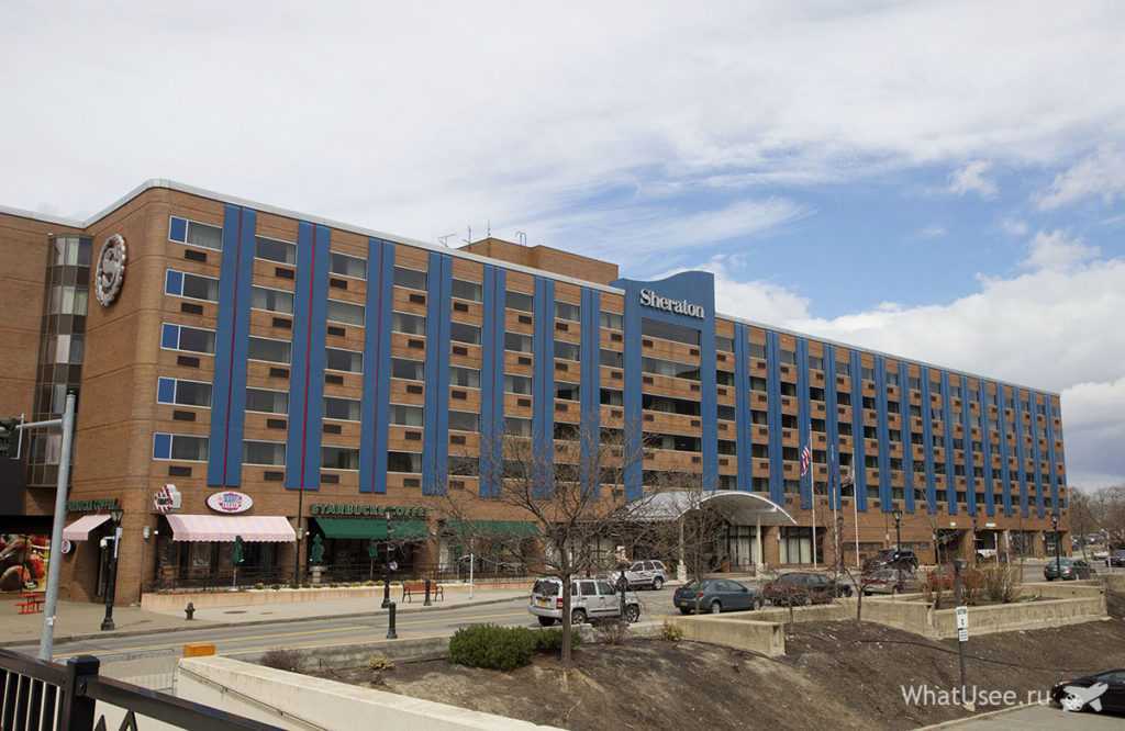 Шератон — большущий отель, напротив расположено казино Seneca. Мы брали комнату без завтрака, позавтракать можно в Старбаксе на углу здания или во Friday’s. Кровати в номере огромные по-американски.